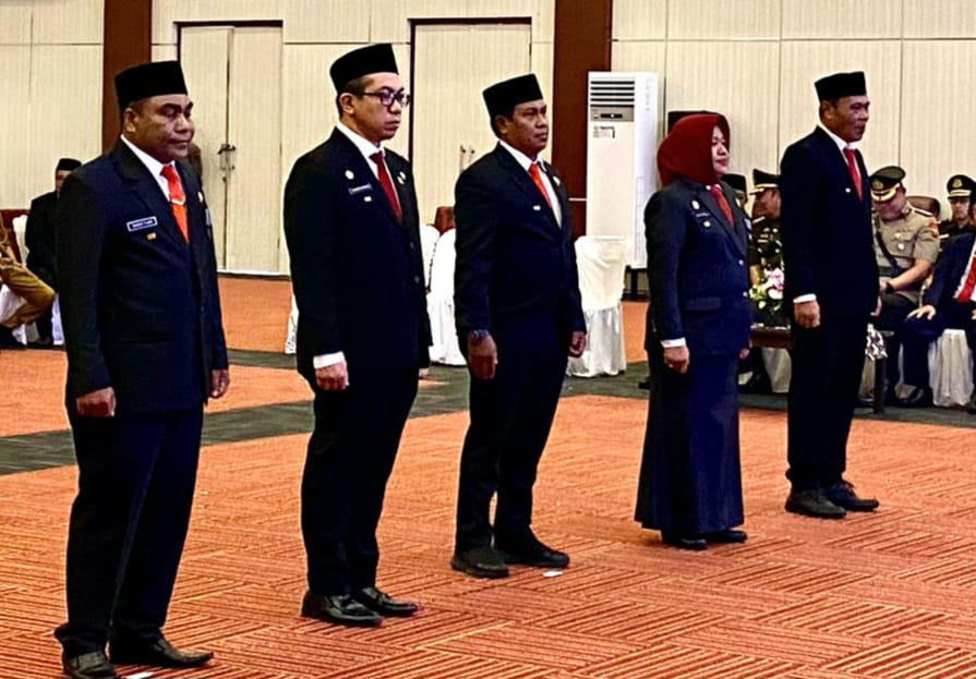 Temperatur – Penjabat (Pj) Gubernur Provinsi Maluku Utara (Malut) Samsuddin Abdul Kadir melantik lima penjabat sementara (Pjs) kepala daerah kabupaten kota. Pelantikan berlangsung di Kantor Gubernur Malut, Selasa (24/9/2024).