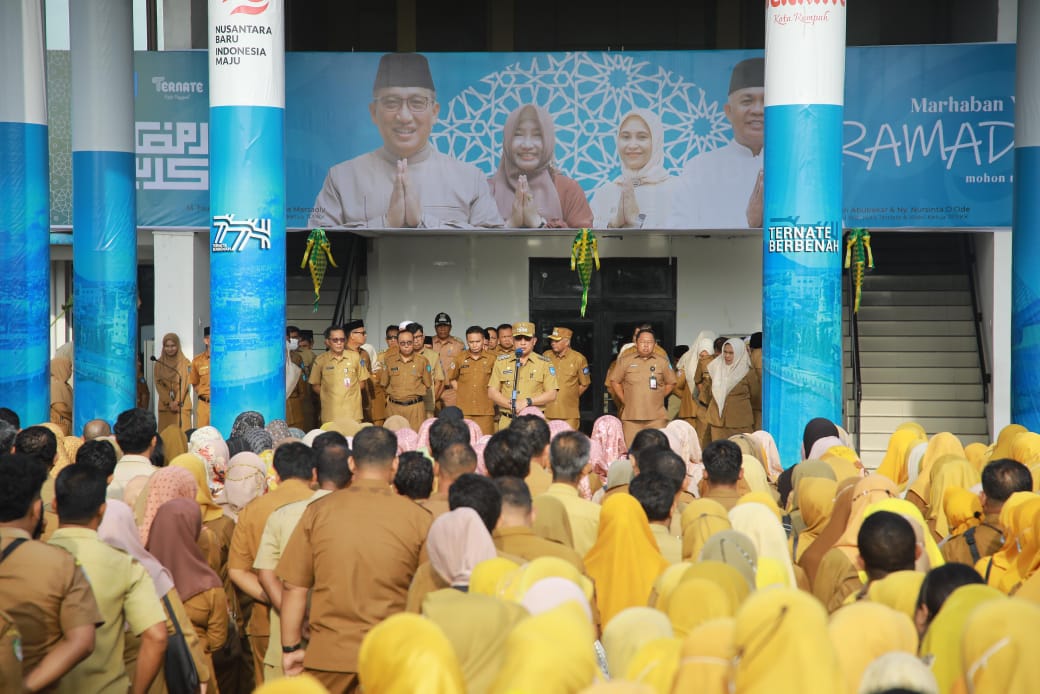 Apel dipusatkan di depan Kantor Wali Kota Ternate, Senin (3/3/2025). Ini merupakan apel gabungan perdana di kepemimpinan M Tauhid Soleman dan Nasri Abubakar.