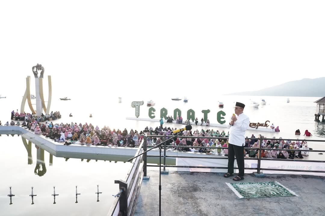 Temperatur — Wali Kota Ternate, M Tauhid Soleman menghadiri Ngaji On The Street Ramadan yang dipusatkan di Landmark Kota Ternate, Minggu (9/3/2025), pagi.