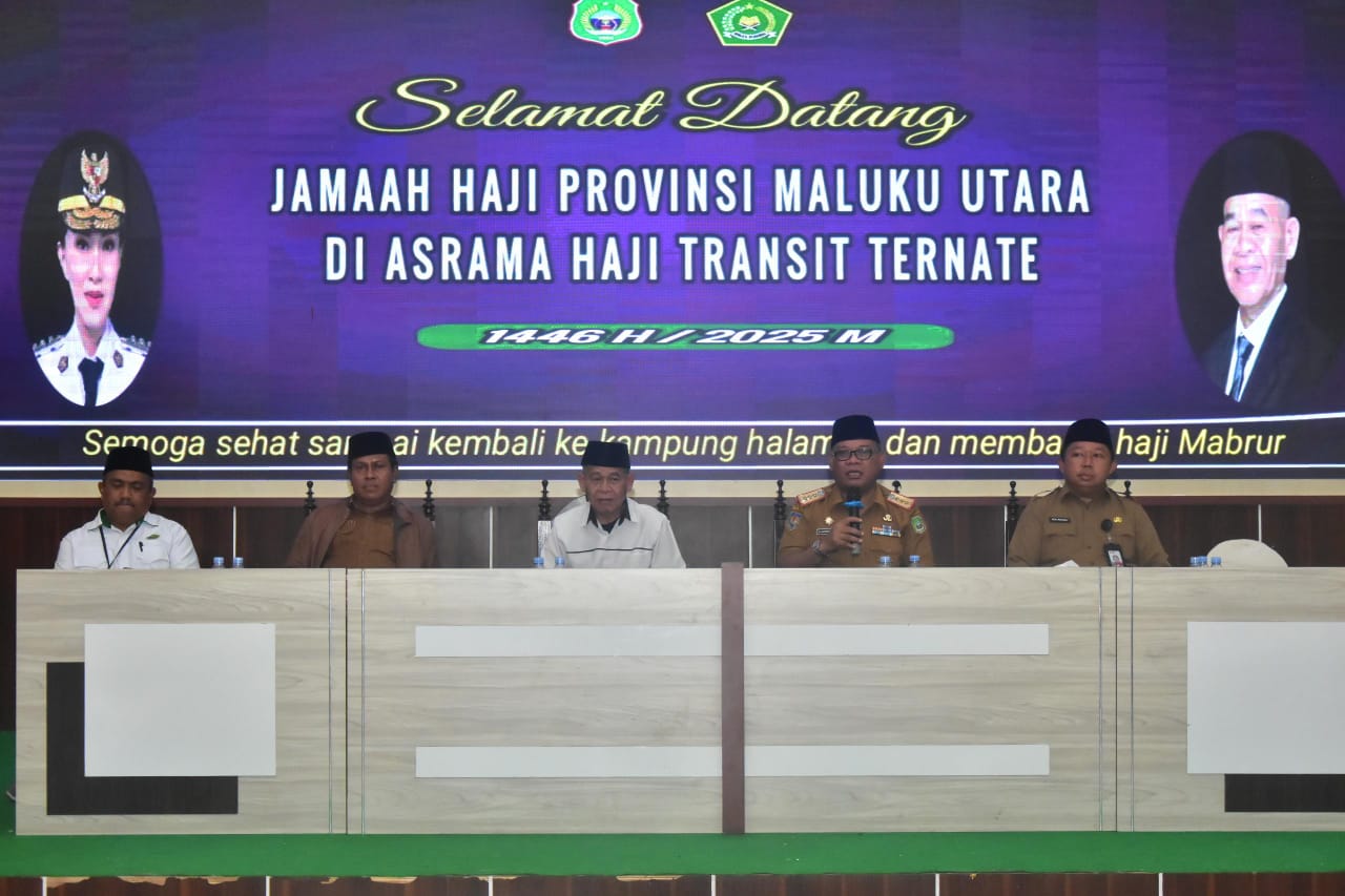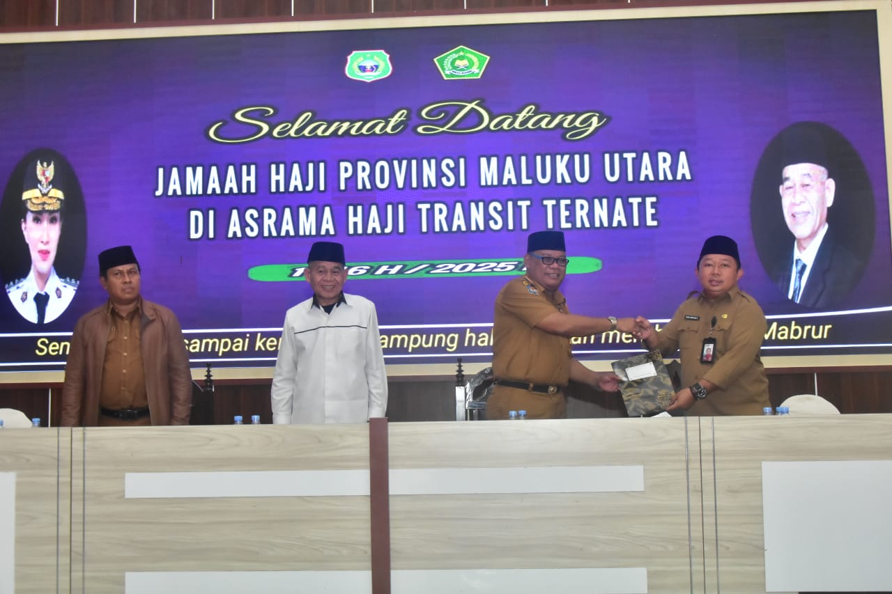 Penyerahan jamaah haji yang baru pulang dari tanah suci Makkah itu dipusatkan di asrama haji transit Ternate, Selasa (24/6/2025) siang tadi.