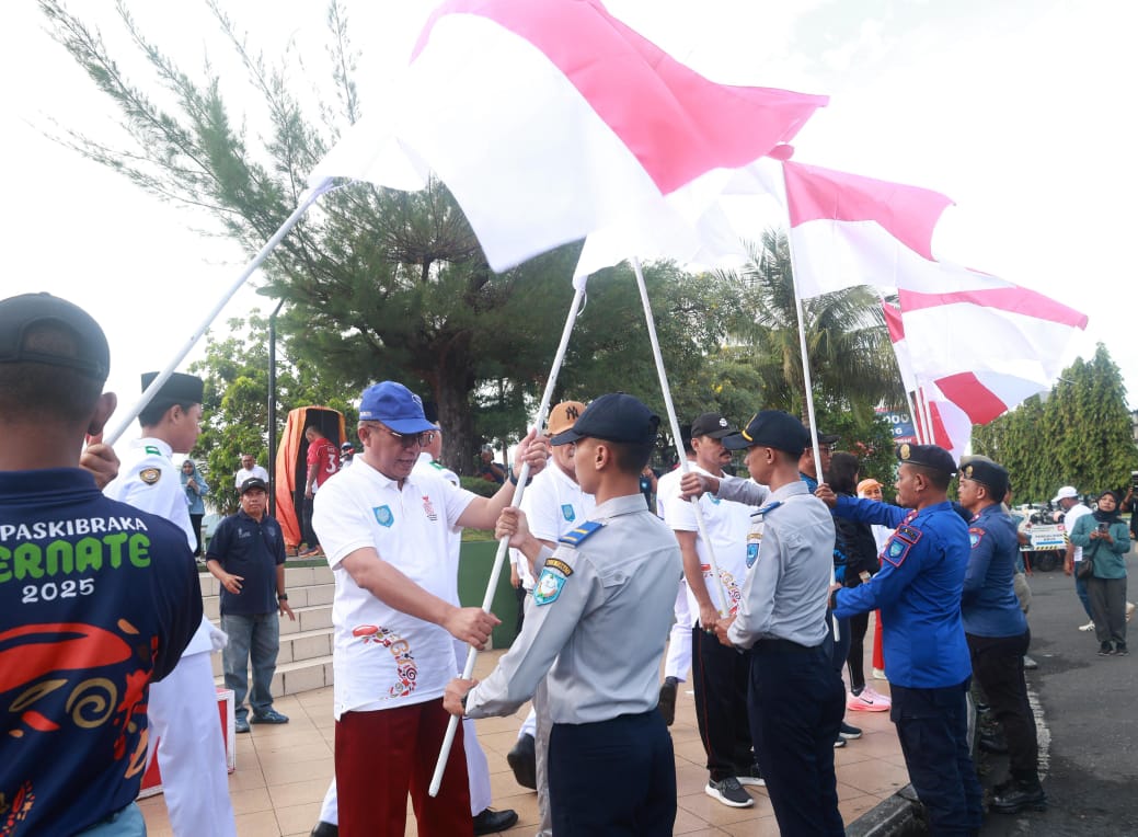 Acara launching berlangsung di landmark, depan kantor wali kota Ternate, Jumat (1/8/2025), pagi, diiringi dengan pembagian bendera merah putih.