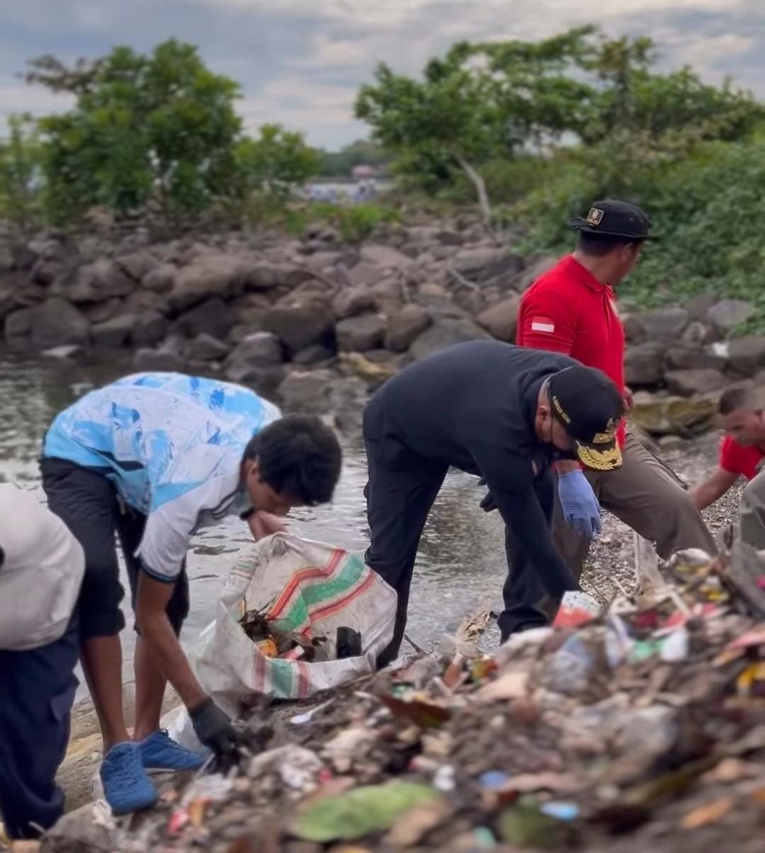 Temperatur – Wakil Gubernur (Wagub) Maluku Utara (Malut) Sarbin Sehe, memimpin aksi bersih-bersih yang digelar Dinas Lingkungan Hidup (DLH) dengan turun memungut sampah bersama ratusan peserta.