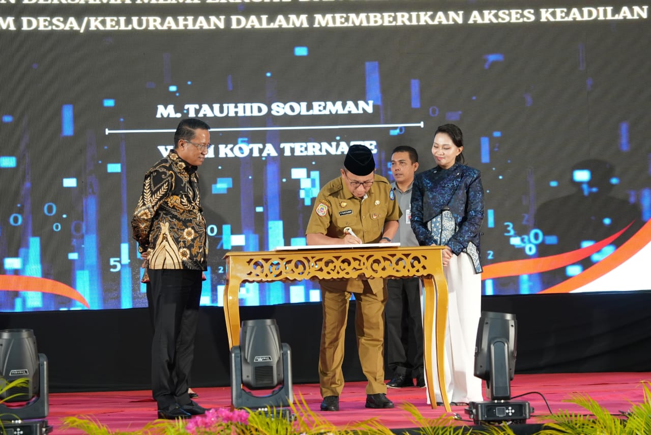 Selain peresmian Posbankum, kegiatan ini juga diisi dengan penandatanganan Nota Kesepahaman (MoU) antara Kementerian Hukum dan HAM RI dan sejumlah kepala daerah, termasuk Pemerintah Kota Ternate, terkait pelaksanaan program bantuan hukum dan pelatihan paralegal.