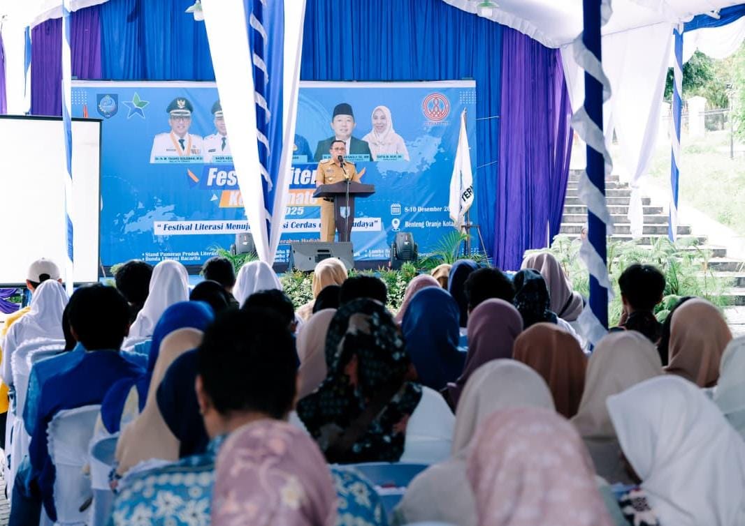 Temperatur – Wali Kota Ternate, M Tauhid Soleman membuka kegiatan Festival Literasi (Pameran Produk Literasi, Gelar Wicara Literasi, dan Penampilan Karya Literasi) di Benteng Oranje, Senin 8 Desember 2025.