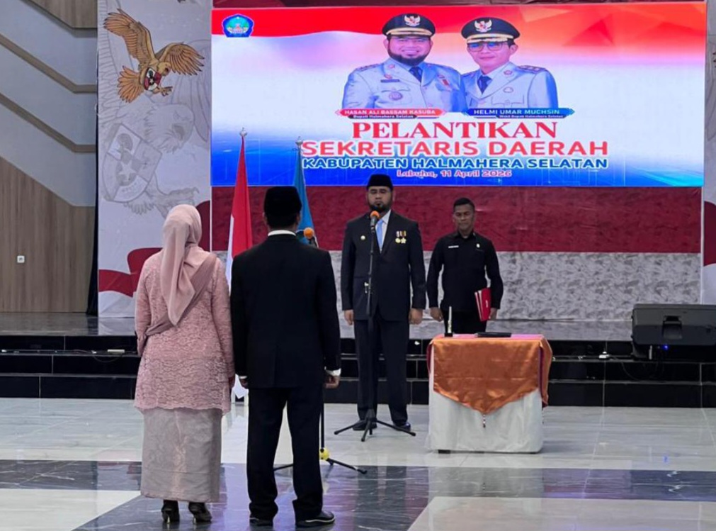 Temperatur – Bupati Halmahera Selatan (Halsel), Hasan Ali Bassam Kasuba, secara resmi melantik Dr. Abdillah Kamarullah, S.E., M.M., sebagai Sekretaris Daerah (Sekda) definitif di Aula Kantor Bupati, Sabtu 11 April 2026