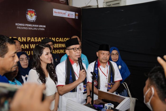 Temperatur – Benny Laos dan Sarbin Sehe mendaftar sebagai bakal pasangan calon (Bapaslon) gubernur dan wakil gubernur Maluku Utara ke KPU, Kamis, (29/8/2024).